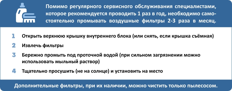 - Очистка: Автоматический 30-минутный цикл самоочистки внутреннего блока. После завершения прибор отключается самостоятельно. Доступен в режимах охлаждения и осушения.