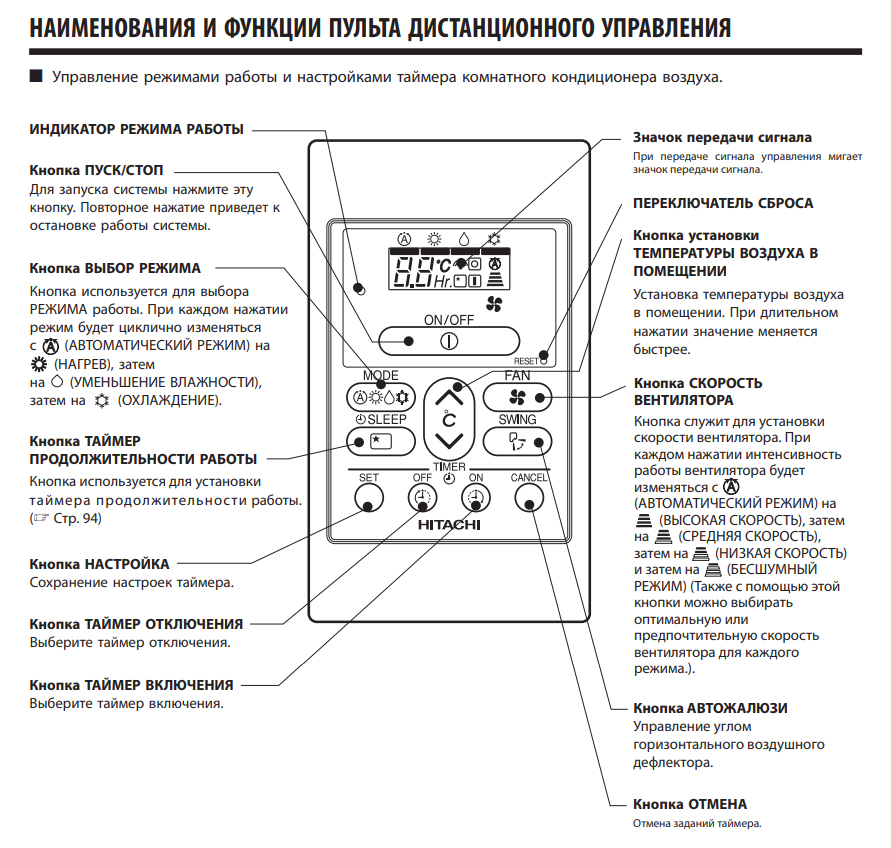 Проводной пульт управления Hitachi SPX-RCDB