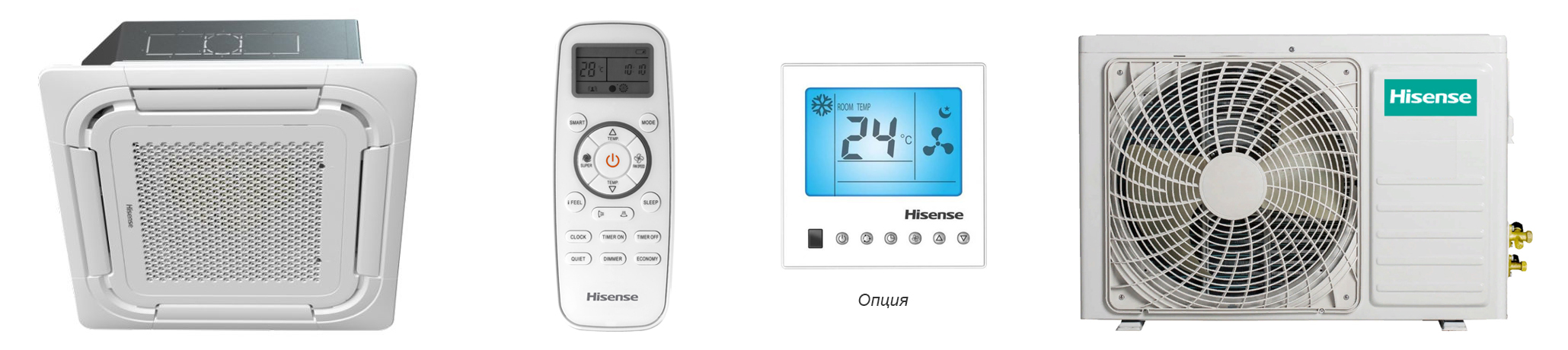 Полупромышленный on-off кондиционер кассетного типа, встраивается в подвесную подпотолочную конструкцию. Применяется в офисных, торговых помещениях, гостиницах, медицинских центрах и др.