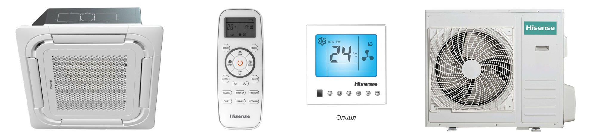 Полупромышленный on-off кондиционер кассетного типа, встраивается в подвесную подпотолочную конструкцию. Применяется в офисных, торговых помещениях, гостиницах, медицинских центрах и др.