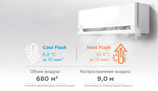 Cool Flash и Heat Flash мгновенное охлаждение и мгновенный обогрев помещения.