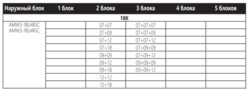Рассчитан на подключение 3 внутренних блоков. Общая площадь охлаждения до 50 кв.м, комбинации внутренних блоков подбираются индивидуально. Внутренние блоки можно подобрать здесь.