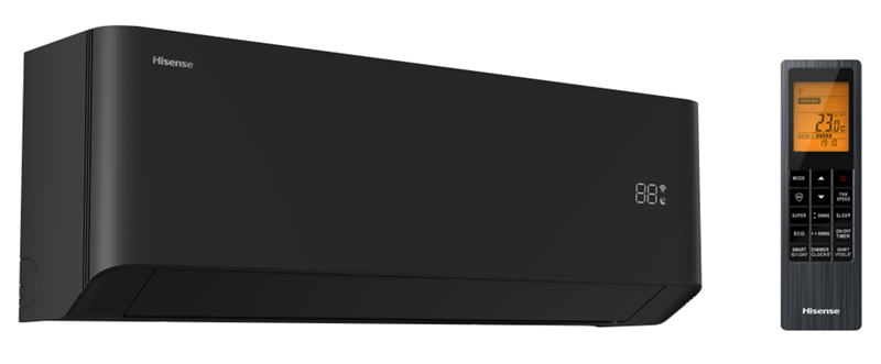 Внутренние блоки Hisense Vibe PRO Carbon — это выбор для тех, кто ценит бескомпромиссный стиль и безупречную функциональность. Модель отличается лаконичным дизайном с четкими геометрическими линиями и выполнена в черном цвете с премиальным матовым акриловым покрытием, подчеркивающим строгую эстетику современного интерьера. Это решение для тех, кто ищет идеальный баланс между архитектурной строгостью форм, мощностью и интеллектуальным управлением микроклиматом.