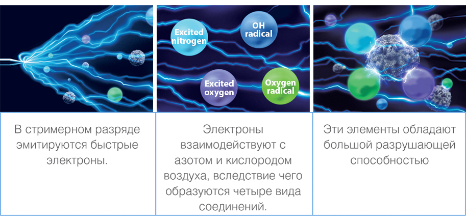 - Flash Streamer — передовая запатентованная технология очистки воздуха. Устройство Flash Streamer генерирует плазменный разряд, который придает огромное ускорение электронам. Пораженные такими электронами вирусы и бактерии разлагаются на фрагменты, окисляются, сталкиваясь с активированными молекулами кислорода и азота, становятся абсолютно безвредными.