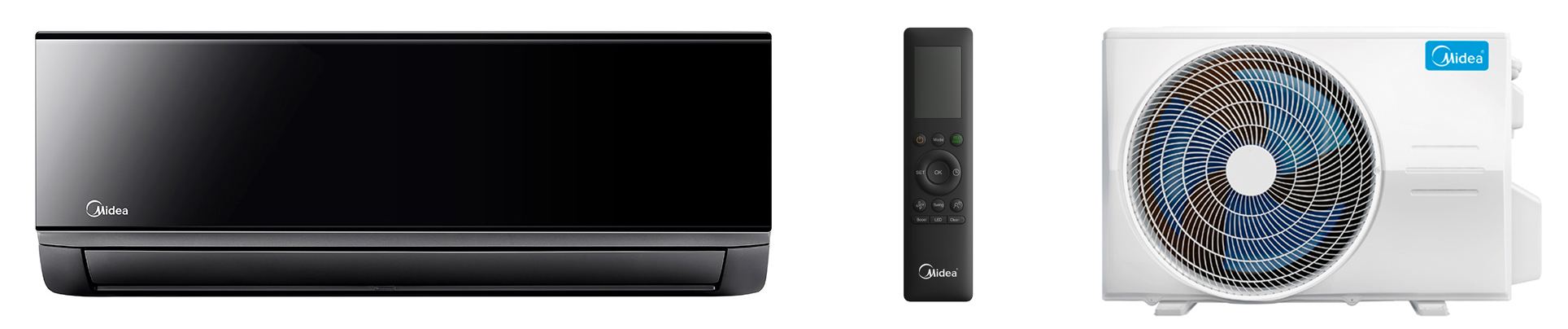 - Full DC inverter (модели 18/24) — инверторный компрессор, инверторный вентилятор внутреннего блока, инверторный вентилятор наружного блока.