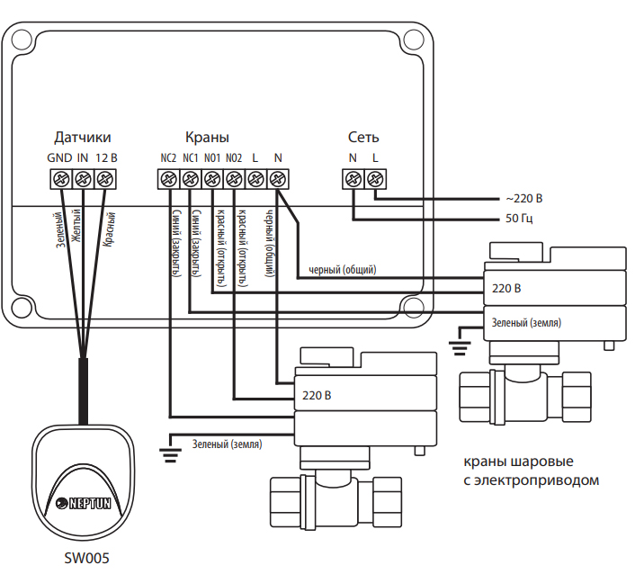 Краны Neptun Bugatti Pro 1/2-220В. 1 шт; Датчики SW005 2шт; Модуль управления Base