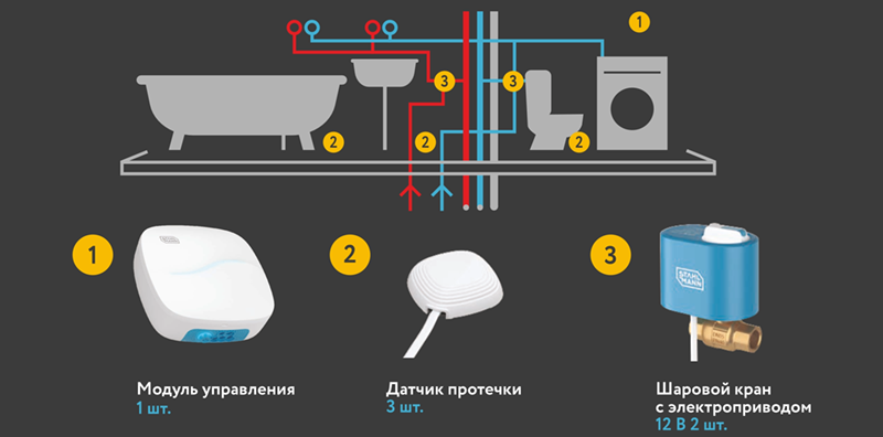 Пример схемы размещения системы защиты от протечек: