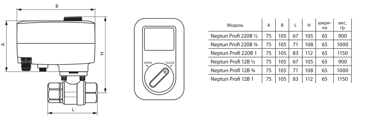 Шаровой кран с электроприводом Neptun PROFI / 12В / 1/2"