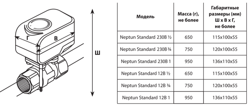 Шаровой кран с электроприводом серии Neptun Standard 12В 3/4"