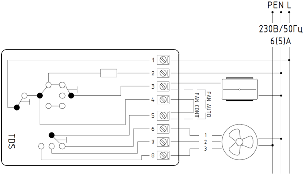 Комнатный термостат TDS со встроенным трехступенчатым регулятором скорости вращения вентилятора