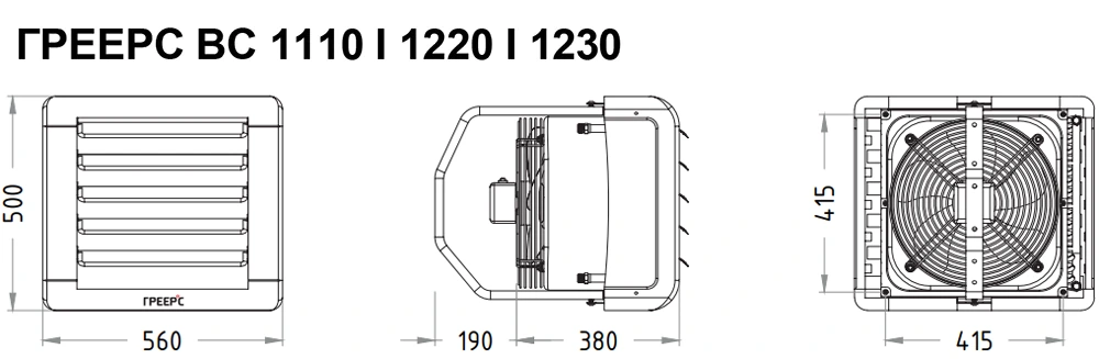 Тепловентилятор данной серии оснащен двигателем АС переменного тока с 3-ступенчатым регулированием мощности. Благодаря регулируемым жалюзи, распределение воздуха осуществляется равномерно по всей площади. Совместим с камерой смешения ГРЕЕРС КС, для подмеса свежего воздуха.