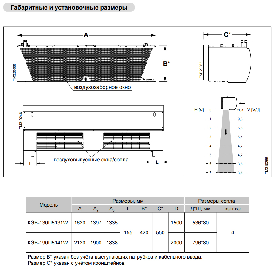 Условная тепловая мощность водяной завесы указанна в кВт.ч при температуре подаваемой воды +95°С / её охлаждением до +70°С / температура окружающей среды +15°С. При изменение любого из показателей мощность будет отличаться от заявленной. (См. технические характеристики модели)