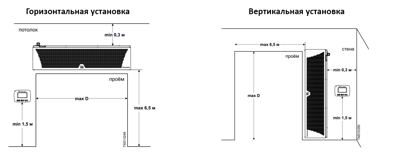 - Устанавливается устройство на высоте 6 метров горизонтально, или в вертикальном положении сбоку от проема.
