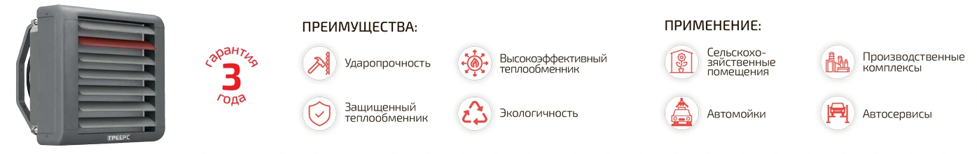 Водяной тепловентилятор ГРЕЕРС серии BC-С с эпоксидированным теплообменником, для использования в агрессивных средах, такие, как: высокая влажность, использование химических веществ, большая запыленность. Сферы применения: сельскохозяйственная промышленность, автомойки, станции технического обслуживания, производства. Представлен в высокопрочном корпусе из вспененного полипропилена, обеспечивает минимальные шумовые показатели.