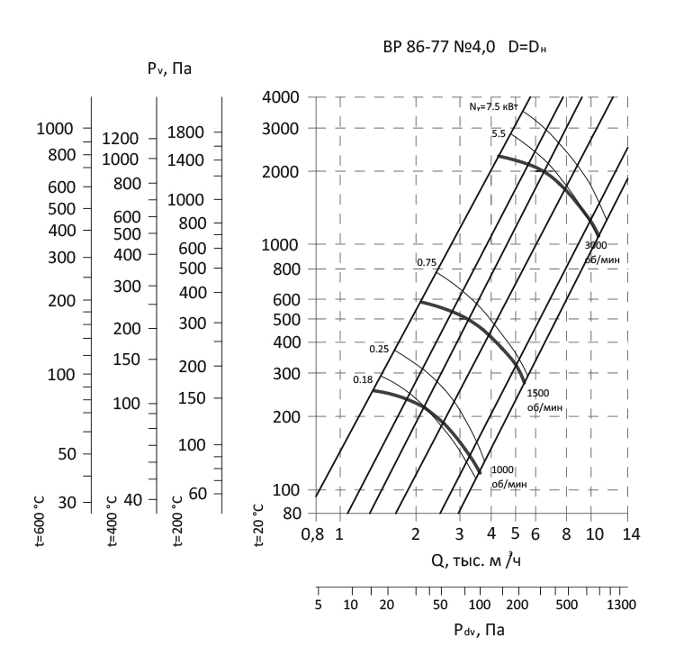 Радиальный вентилятор низкого давления ВР 86-77 / №4,0 / 0,75 кВт / 1500 об./мин. / Прав / 0°