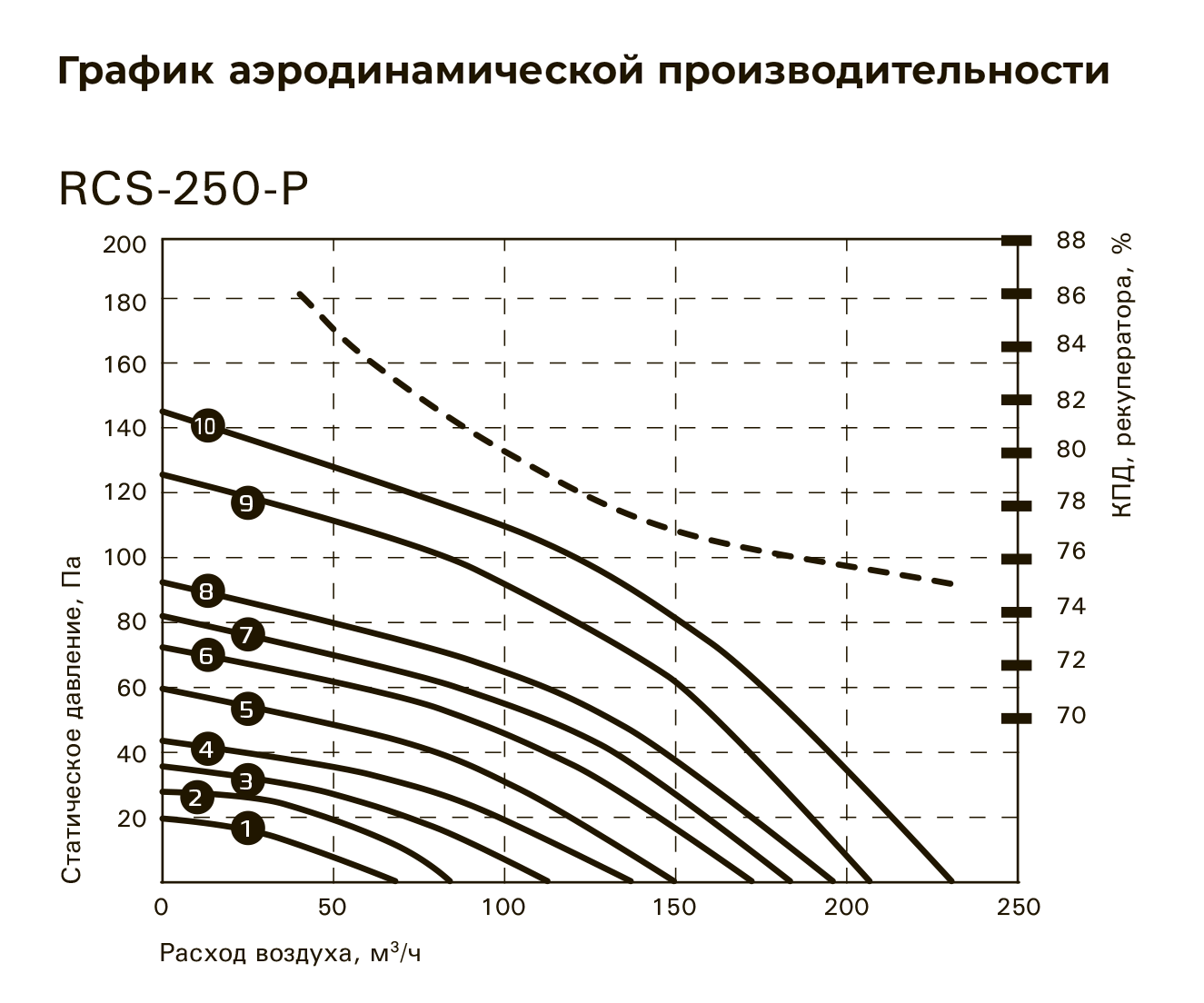 Значение по площади в м2 - ориентировочное. Для более точного подбора необходимы параметры: объем помещения м3; аэродинамическое сопротивление сети воздуховодов; назначение помещения; необходимая кратности обмена воздуха, наличие вытяжной системы.